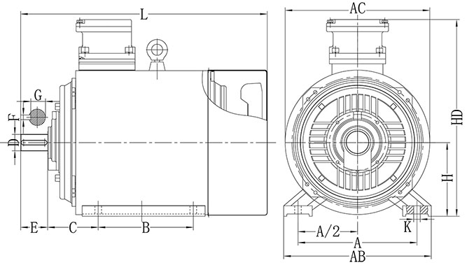 采用高效內(nèi)轉(zhuǎn)子驅(qū)動(dòng)結(jié)構(gòu)形式,類(lèi)似Y系列異步電機(jī)外殼結(jié)構(gòu),尾部吹風(fēng)強(qiáng)制風(fēng)冷散熱形式,電機(jī)機(jī)殼密封。
